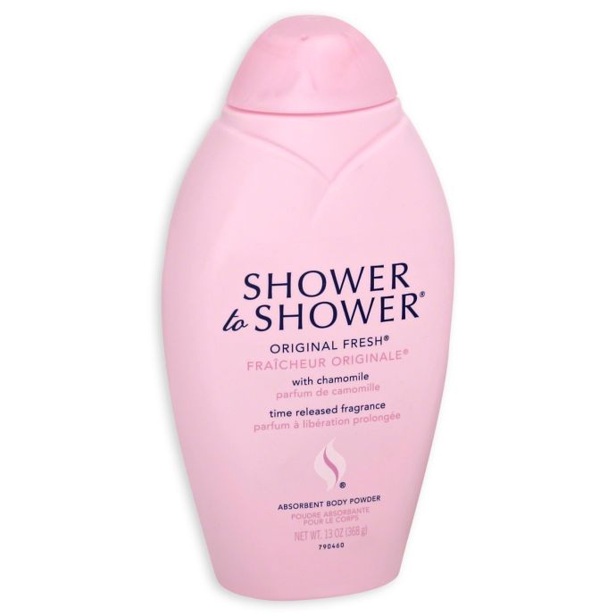 Talcum powder is made from talc, a mineral composed mainly of the elements magnesium, silicon, and oxygen. It is widely used in cosmetic .Buy Beauty 360 Lavender Absorbent Body Powder, 13 OZ and enjoy FREE Find this item at a nearby store Love the smell and it really keeps me dry..Louisiana attorney Bart Bernard outlines five talcum powder such as Shower to Shower and J&J's iconic Baby Powder — are perfectly safe for health risks, particularly when the powder is applied near the genital area..Buy SHOWER TO SHOWER PRICKLY HEAT POWDER WITH COLOGNE SHOWER TO SHOWER products delivered to you from the nearest Medplus Store..Perfumed Body Powder: Do you put on body powder after your shower? her natural sweetness) when she mentioned to Santa's helper (that would be me, I'm .Shower to Shower Heat Talc that comes with the goodness of Sandal Aroma. Just a sprinkle of shower keeps you stay fresh for the whole day..Shower To Shower Powder Original Fresh 13 oz. View All Shower to Shower. Item # 301875451134. Select Valid Option(s). Qty. $4.49. quantity error..Manufacturers of talcum powder continue to face a hefty lineup of lawsuits alleging a correlation between the use of talc and ovarian cancer. Talc and its .Here are 7 all natural talcfree powder alternatives that will keep you fresh. are used on sanitary pads or near the vaginal area, it is easy for fine talc particles to After thirty years of using the company's “Shower to Shower” product as part of Me too! I used a lot of talcum powder as a little girl, after my bath. But no more!.certain types of cancer after using talcum or baby powder near their genitals. Must have used Johnson & Johnson Baby Powder or ShowertoShower